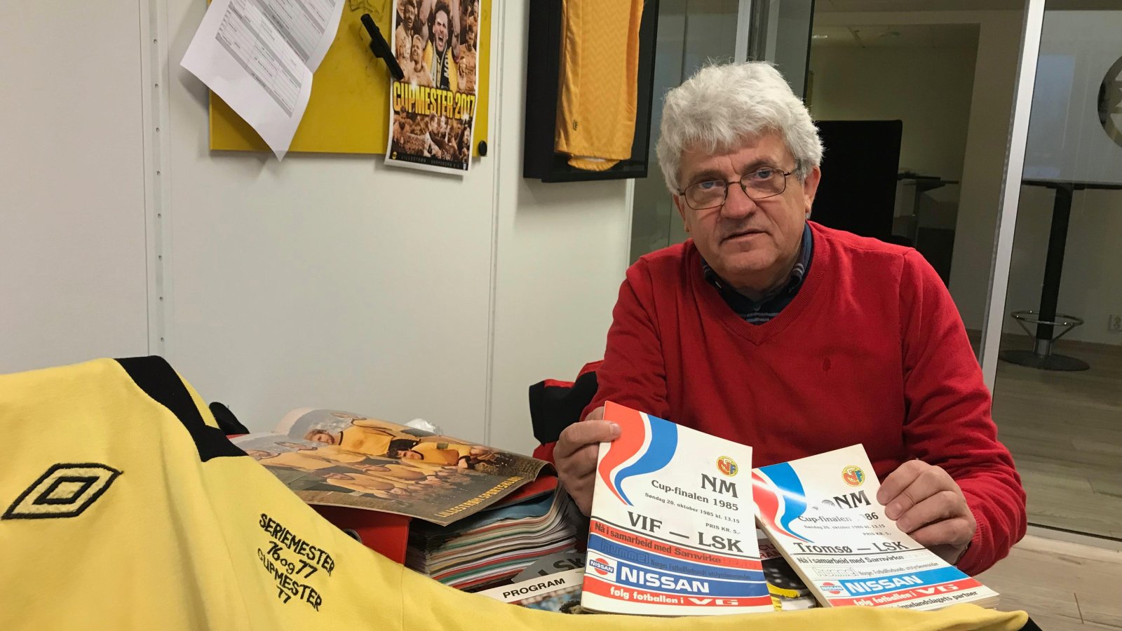 Mangeårig sportsjournalist Arnfinn Fagerli har ryddet på loftet. Og kom innom LSK-kontorene med 1978-drakta til Vidar Hansen, gamle cupfinaleprogram og mye annet med historisk sus over seg.