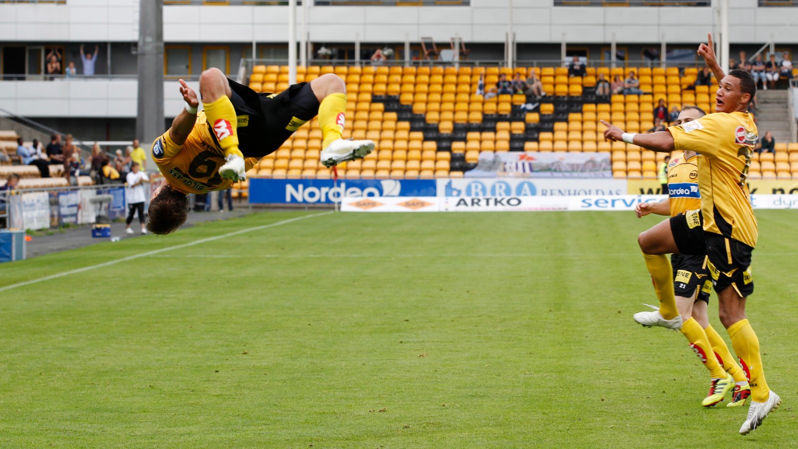Det er hele ni år siden Fredrik Gulbrandsen feiret med salto foran en jublende Ruben Gabrielsen (bildet), men kjærligheten til LSK og Romerike er like stor. Nå går de to utenlandsproffene i bresjen for at Ahus-ansatte skal hylles på et fullsatt Åråsen den dagen portene åpnes for publikum. Video