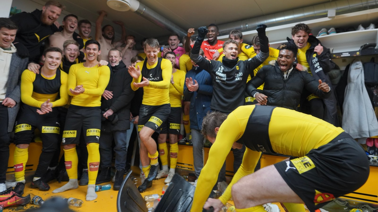 Jubelen sto i taket i garderoben etter at fjerdeplassen i Eliteserien var sikret. Se intervjuer med Geir Bakke og Vetle Dragsnes her. Video