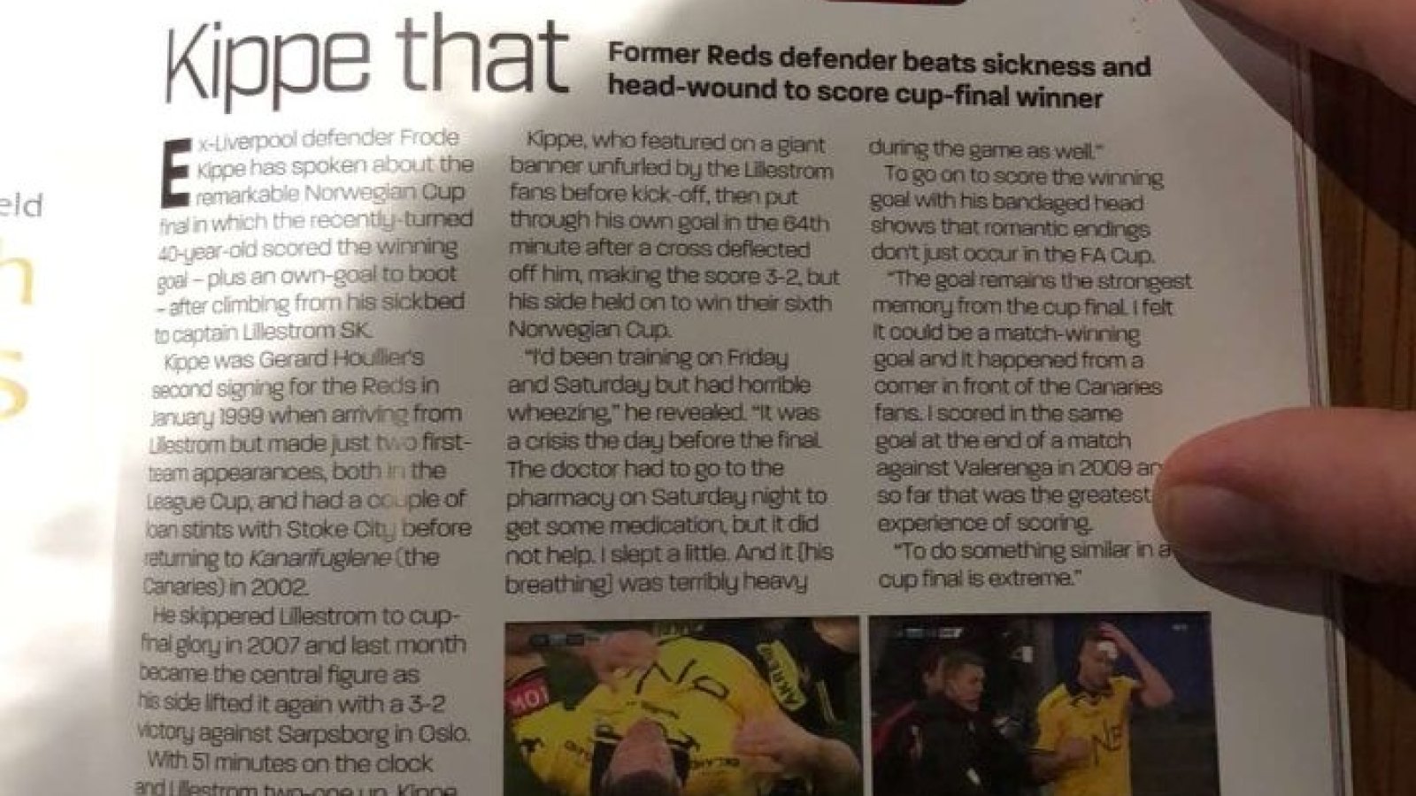 - Det er stas, det. Det viser jo at selv den norske cupen blir lagt merke til, og hvilken bragd Lillestrøm har gjort. Moro, sier Frode Kippe om omtalen i gamleklubbens program.