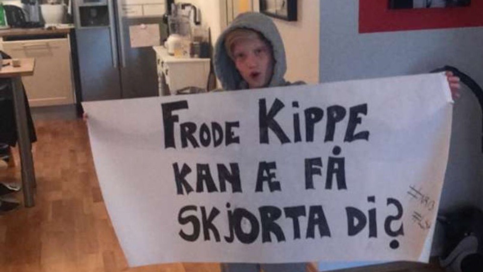 - Noah er nettopp blitt 10 år og er også bitt av basillen. Dette blir hans første kamp på Åråsen. Han gleder seg veldig, og har lagd et eget banner til Frode Kippe. Vi la på de siste fargene i går kveld, sier Bård Engeseth.
