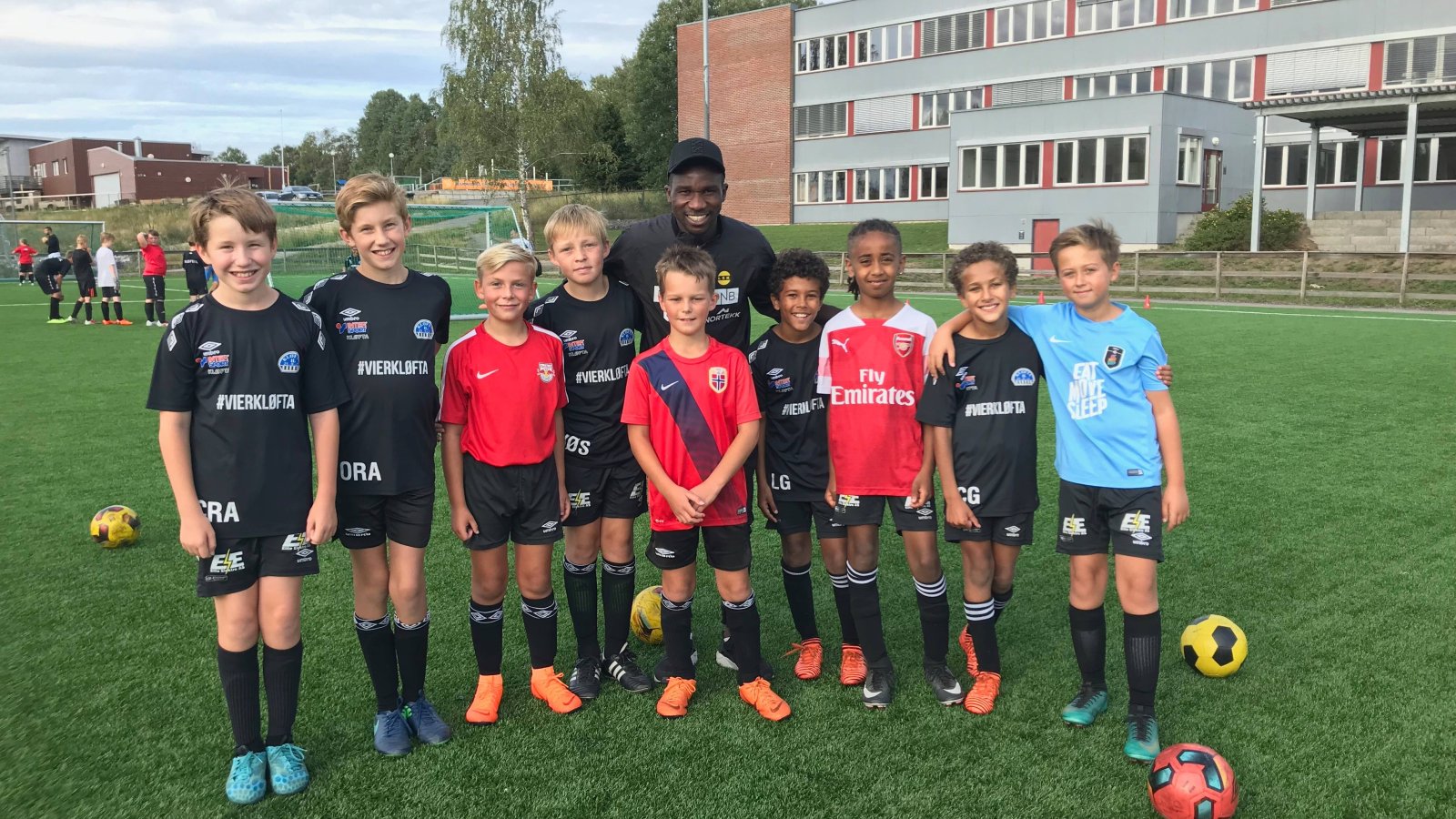 Ifeanyi Mathew (21) og de andre LSK-spillerne fikk mange nye venner da de på onsdag trente 112 unge fotballspillere på Kløfta. Video