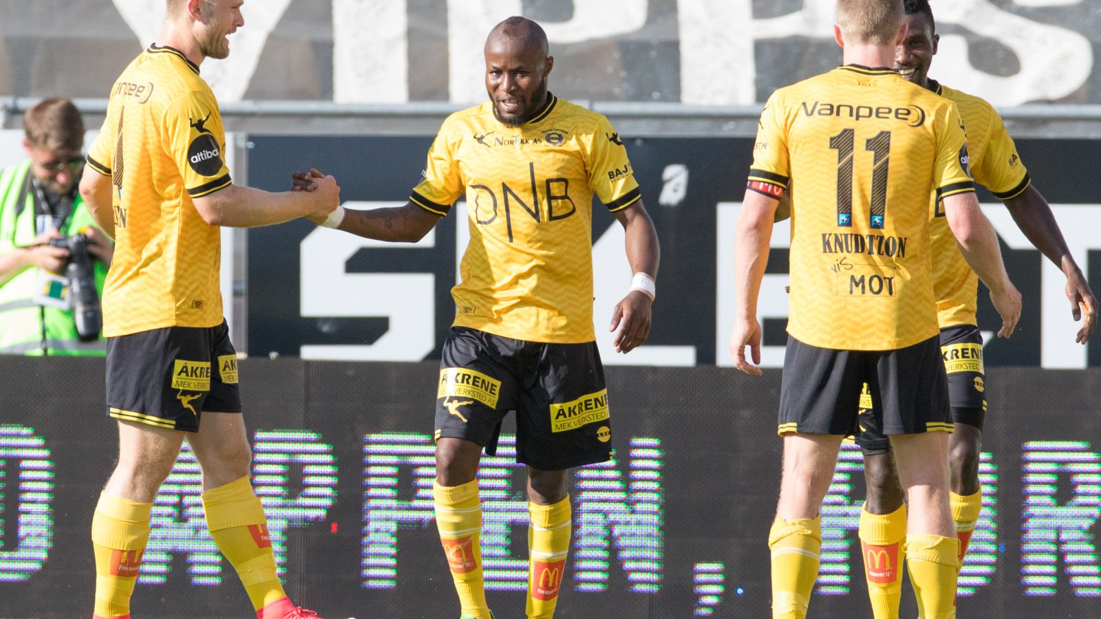 I stedet er det de gule og svarte som kan slippe jubelen løs etter 32 minutter. Mathew får ballen på midtbanen. Han finner Udo på 16-meteren med en millimeterpasning. Udo tar ned ballen på brystet, vender og banker den inn i det nærmeste hjørnet på volley. Det står 1-0 på Åråsen.