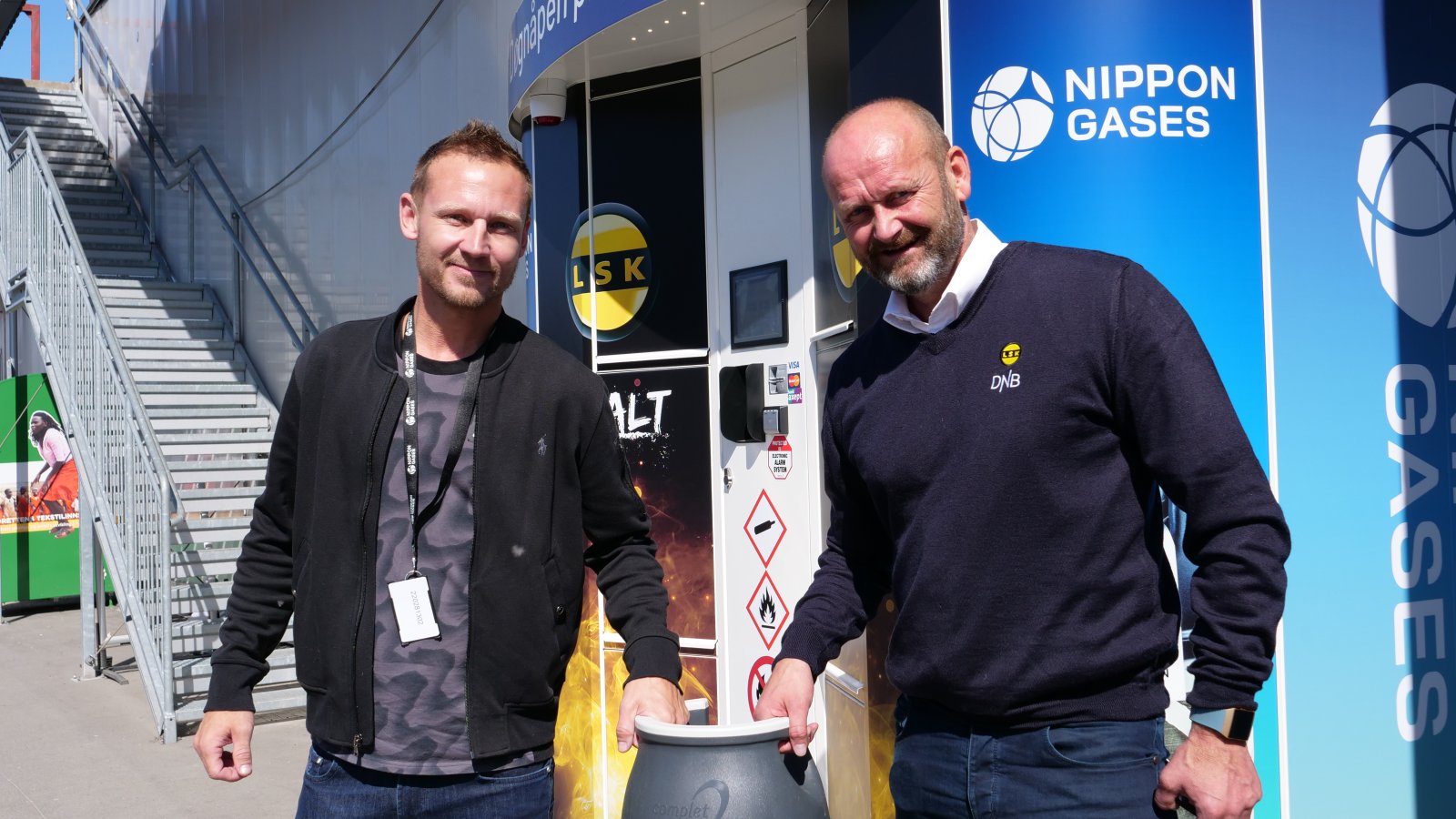 - Vi er glade for å få på plass den første Nippon Gases-automaten her i Lillestrøm. Håpet er at så mange som mulig velger å kjøpe propangass til grillen sin her. Da støtter du samtidig LSK med penger. En stor takk både til Rema 1000, Ragde Eiendom og LSK for flott samarbeid, sier regionansvarlig i Nippon Gases, Morten Bræin.