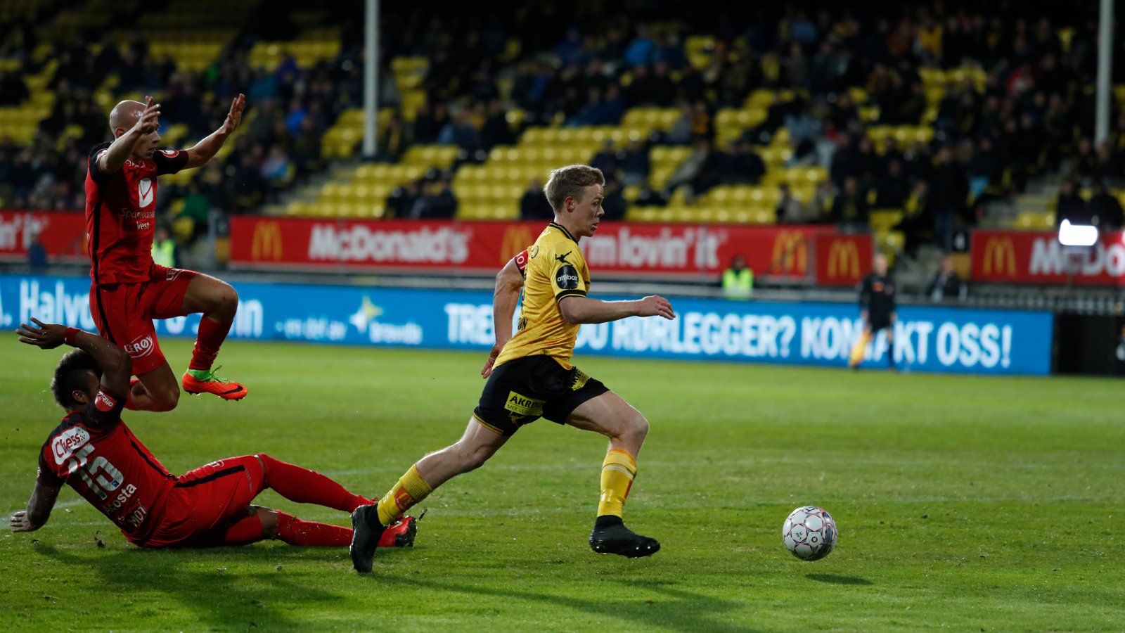 Litt senere er det Udoji som får muligheten, men vinkelen blir for spiss og avslutningen går over.