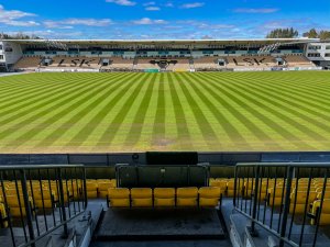 I går ble duken tatt av. Gjett om vi gleder oss til at spillerne innvier den nye gressmatta på Åråsen!