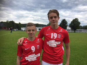 Oliver Henriksrud (til venstre) og Maximilian Balatoni (til høyre) er to av fem LSK-spillere født i 2005 som er tatt ut til digital landslagssamling torsdag 15. april. Leandre Neto, Kaja Kelly og Ane Wedde Buer er de andre.