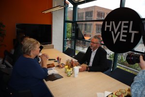 Oppover-gründer Bjørn Skovli - som her diskuterer gründer-virksomhet med statsminister Erna Solberg - tar sats og blir ny sølvpartner i LSKs sponsornettverk.