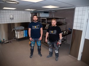 Tidligere i år forlenget de samarbeidsavtalen med LSK med to år. De siste månedene har Andreas Kjelsås (t.v) og Glenn-Vidar Moen totalrenovert kjøkkenet på Åråsen.