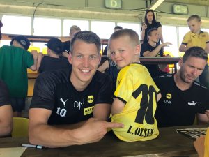Åpen dag-arrangementet ble en stor suksess, både for store og små som storkoste seg i det fine været. For fem år gamle Noah Lund Olsen var det ekstra stas å få møte favorittspilleren med nesten likt navn: Thomas Lehne Olsen.