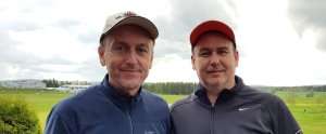 Tom og Kai Eriksen (til høyre) fra Outsearching gikk til topps i første del av LSKs bedriftserie i golf.