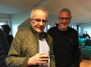 Selv om kampen var en skuffelse, trivdes Jon H. Nordbrekken på Åråsen søndag - sammen med gamle kjente som mangeårig LSK-leder Svein Skoglunn.